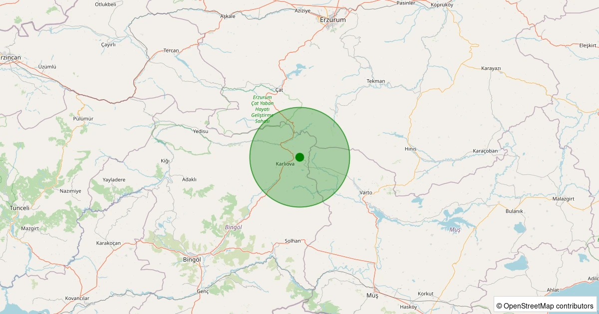 Son 7 gün içinde Karlıova - Kargapazar Köyü noktasından 100 km yarıçap içerisinde meydana gelen diğer depremler: