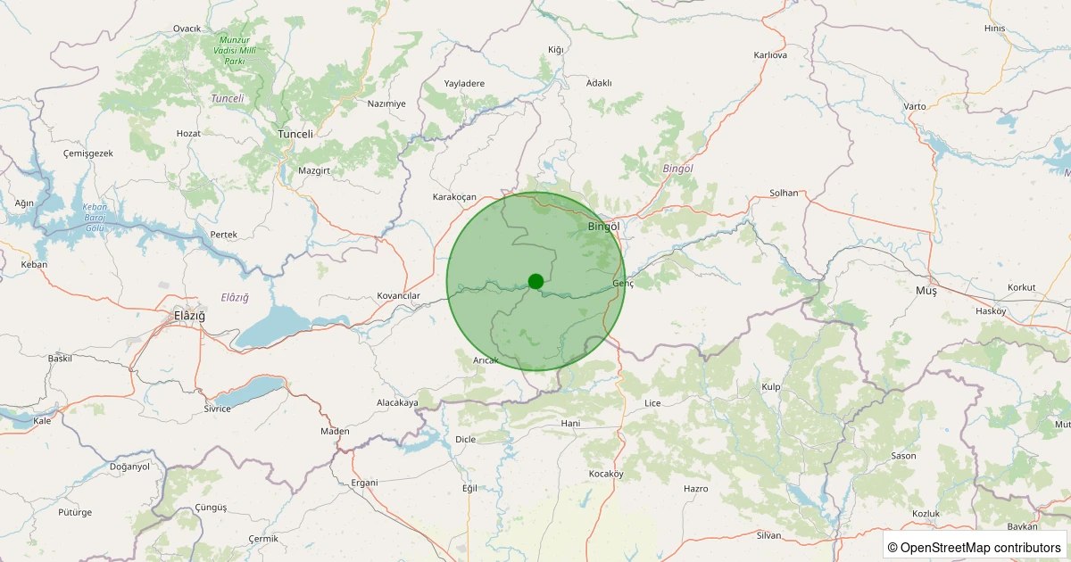 Son 7 gün içinde Palu - Ziver Köyü noktasından 100 km yarıçap içerisinde meydana gelen diğer depremler: