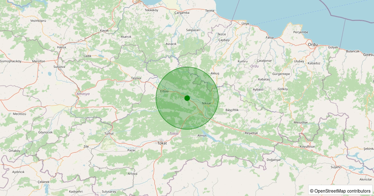Son 7 gün içinde Niksar - Kümbetli Köyü noktasından 100 km yarıçap içerisinde meydana gelen diğer depremler: