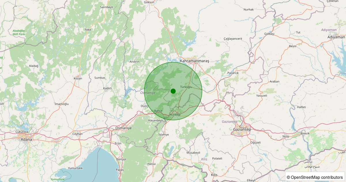 Son 7 gün içinde Türkoğlu - Büyükimalı noktasından 100 km yarıçap içerisinde meydana gelen diğer depremler: