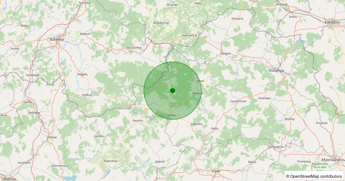 Kandilli üzerinden alınan ölçümlere göre Simav - Yeşildere Köyü bölgesinde 20.03.2026 08:37 tarihinde gündüz saatlerinde 1.2 büyüklüğünde bir deprem meydana geldi.