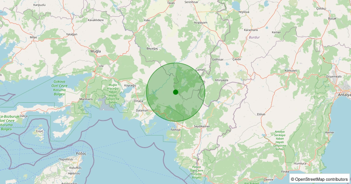 Son 7 gün içinde Dalaman - Taşbaşı noktasından 100 km yarıçap içerisinde meydana gelen diğer depremler: