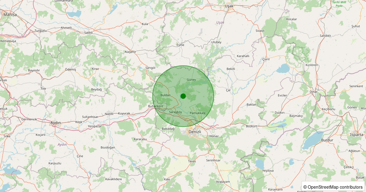 Son 7 gün içinde Buldan - Mahmutlu noktasından 100 km yarıçap içerisinde meydana gelen diğer depremler: