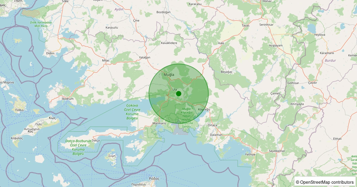 Son 7 gün içinde Ula - Yeşilova noktasından 100 km yarıçap içerisinde meydana gelen diğer depremler: