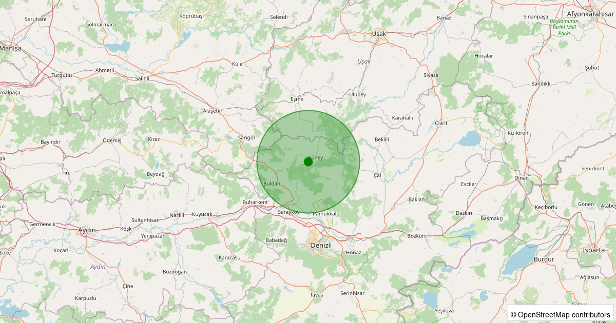 Son bir hafta içerisinde Denizli şehri Güney - Karaağaçlı noktasından 100 km yarıçap içerisinde toplamda 216 deprem kaydedilmiştir. Bu depremlerden en büyüğü 3.9 büyüklüğünde ve en sığ odaklısı 1.00 kilometre derinlikte gerçekleşmiştir.