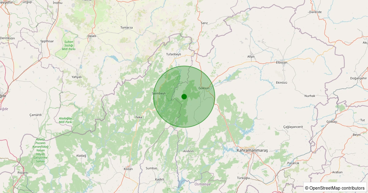 Son 7 gün içinde Göksun - Hacıkodal noktasından 100 km yarıçap içerisinde meydana gelen diğer depremler: