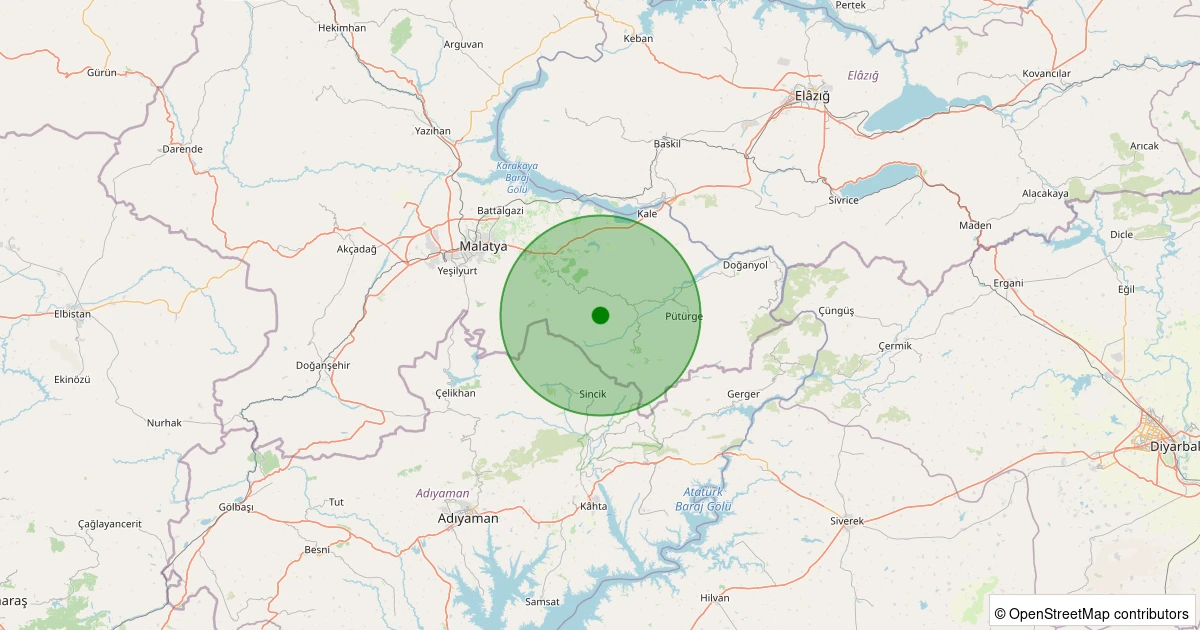 Son 7 gün içinde Pütürge - Tekederesi Köyü noktasından 100 km yarıçap içerisinde meydana gelen diğer depremler: