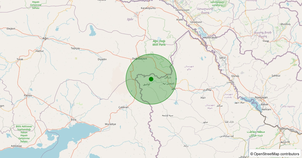 Son 7 gün içinde Chaldoran, West Azarbaijan (İran) - [06.28 km] Doğubayazıt (Ağrı) noktasından 100 km yarıçap içerisinde meydana gelen diğer depremler: