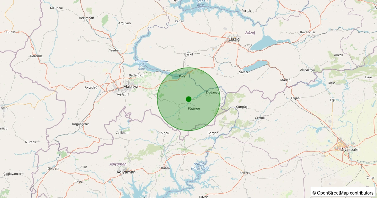 Son 7 gün içinde Pütürge - Aktarla Köyü noktasından 100 km yarıçap içerisinde meydana gelen diğer depremler: