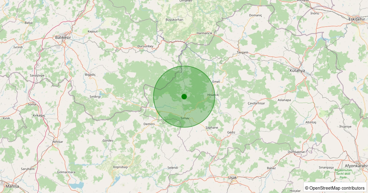 Son 7 gün içinde Simav - Yemişli Köyü noktasından 100 km yarıçap içerisinde meydana gelen diğer depremler: