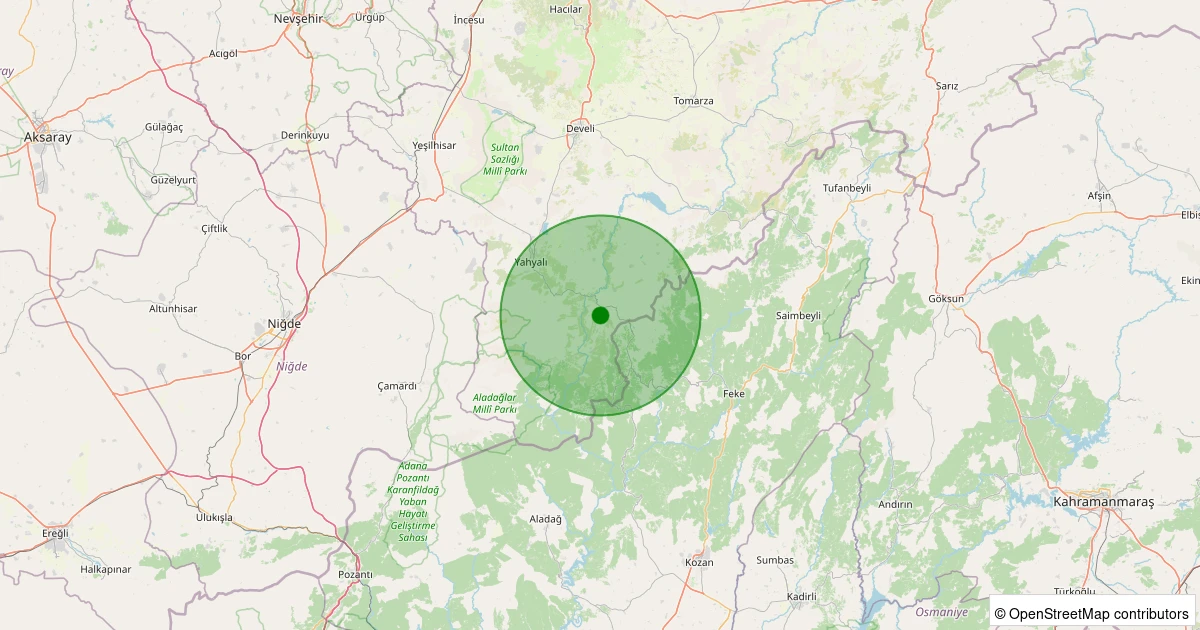 Son 7 gün içinde Yahyalı - Deliali Uşağı noktasından 100 km yarıçap içerisinde meydana gelen diğer depremler: