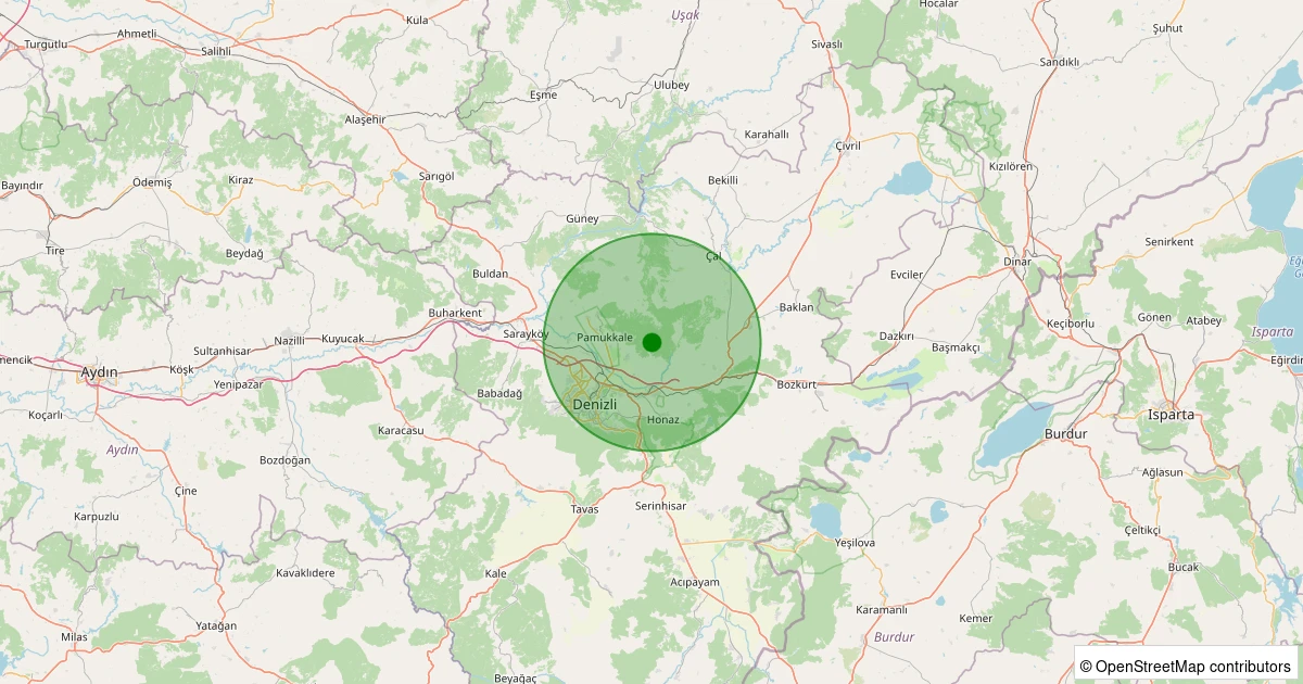 Son 7 gün içinde Pamukkale - Güzelpınar Köyü noktasından 100 km yarıçap içerisinde meydana gelen diğer depremler: