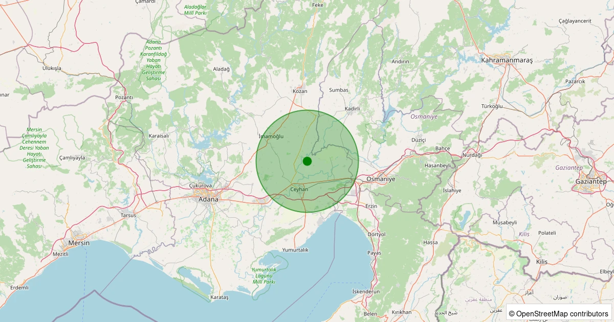 Son 7 gün içinde Ceyhan - Çerkezkaramezar noktasından 100 km yarıçap içerisinde meydana gelen diğer depremler: