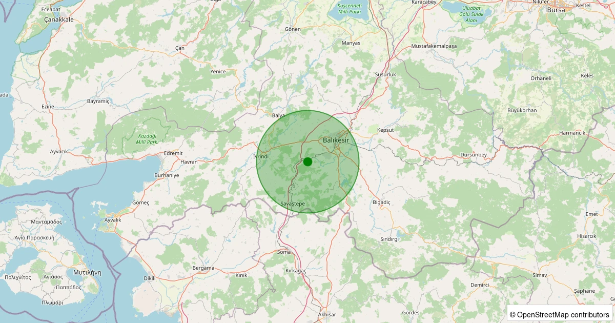 Son 7 gün içinde Altıeylül - Çukurhüseyin noktasından 100 km yarıçap içerisinde meydana gelen diğer depremler: