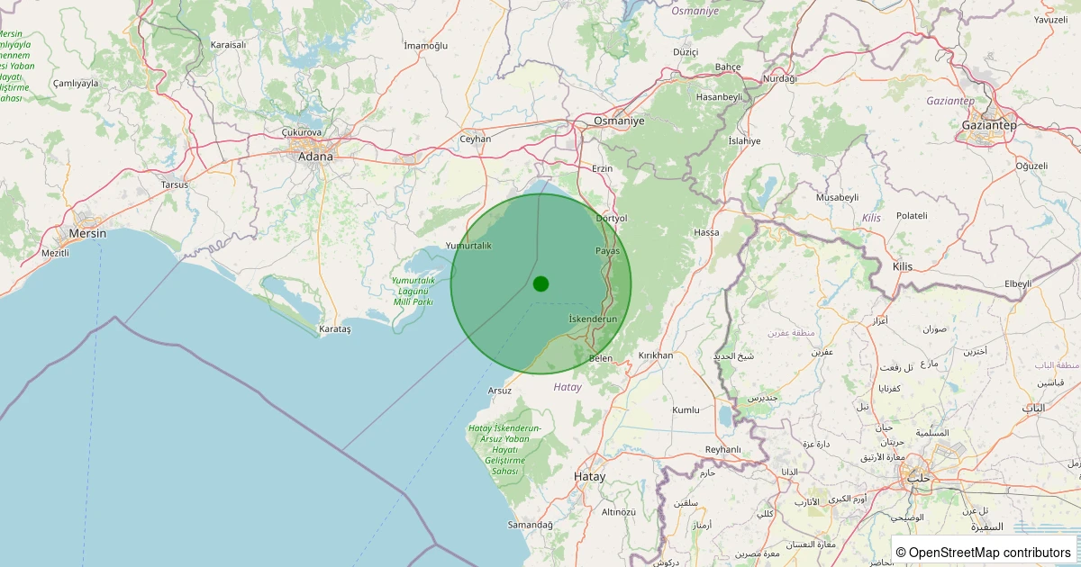 Son 7 gün içinde ISKENDERUN noktasından 100 km yarıçap içerisinde meydana gelen diğer depremler: