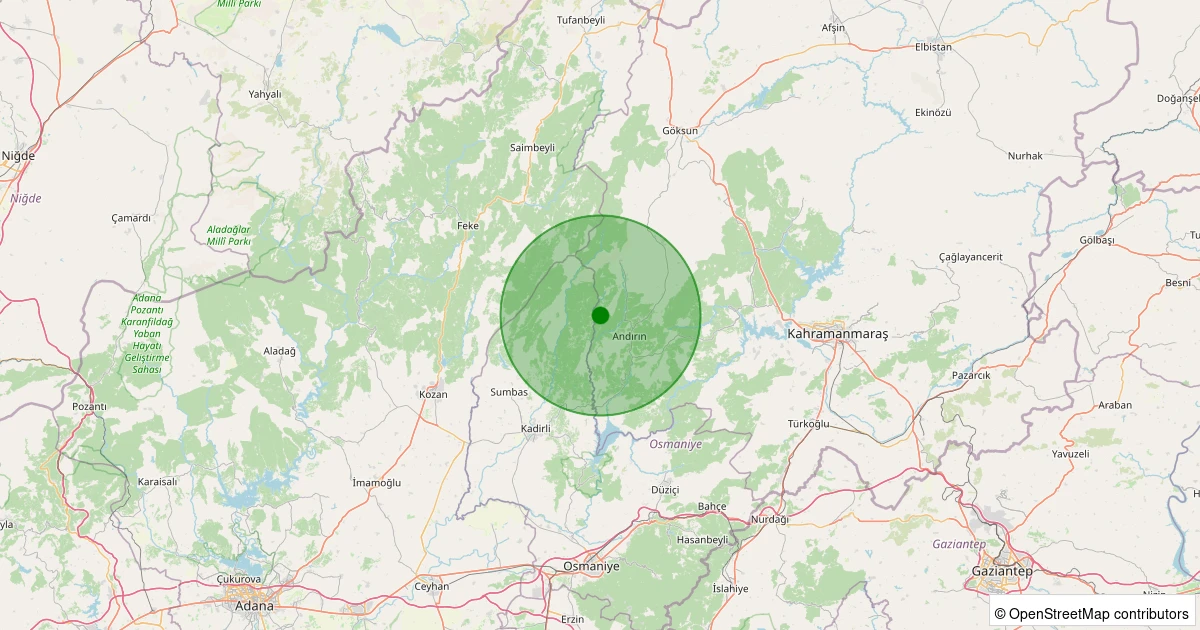 Son 7 gün içinde Andırın - Karapınar Köyü noktasından 100 km yarıçap içerisinde meydana gelen diğer depremler: