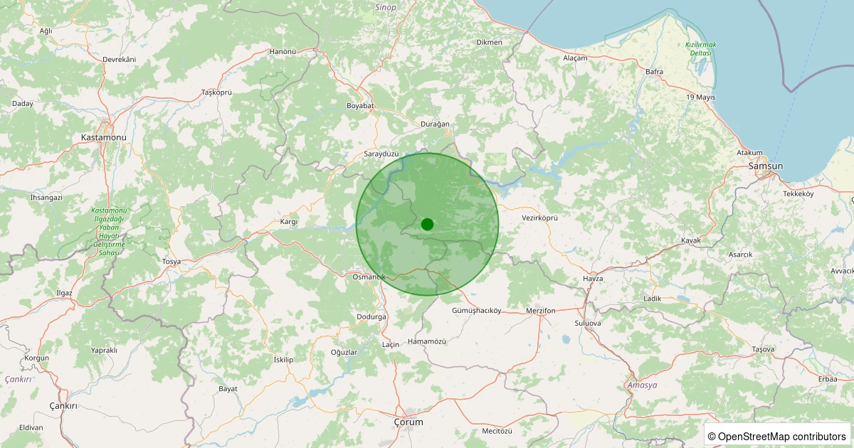 Son 7 gün içinde Vezirköprü - Sarıdıbek noktasından 100 km yarıçap içerisinde meydana gelen diğer depremler:
