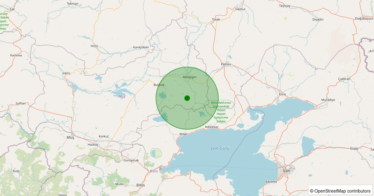 Son 7 gün içinde Malazgirt - Molladerman Köyü noktasından 100 km yarıçap içerisinde meydana gelen diğer depremler: