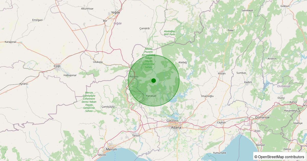 Son 7 gün içinde Karaisalı - Çukur Köyü noktasından 100 km yarıçap içerisinde meydana gelen diğer depremler: