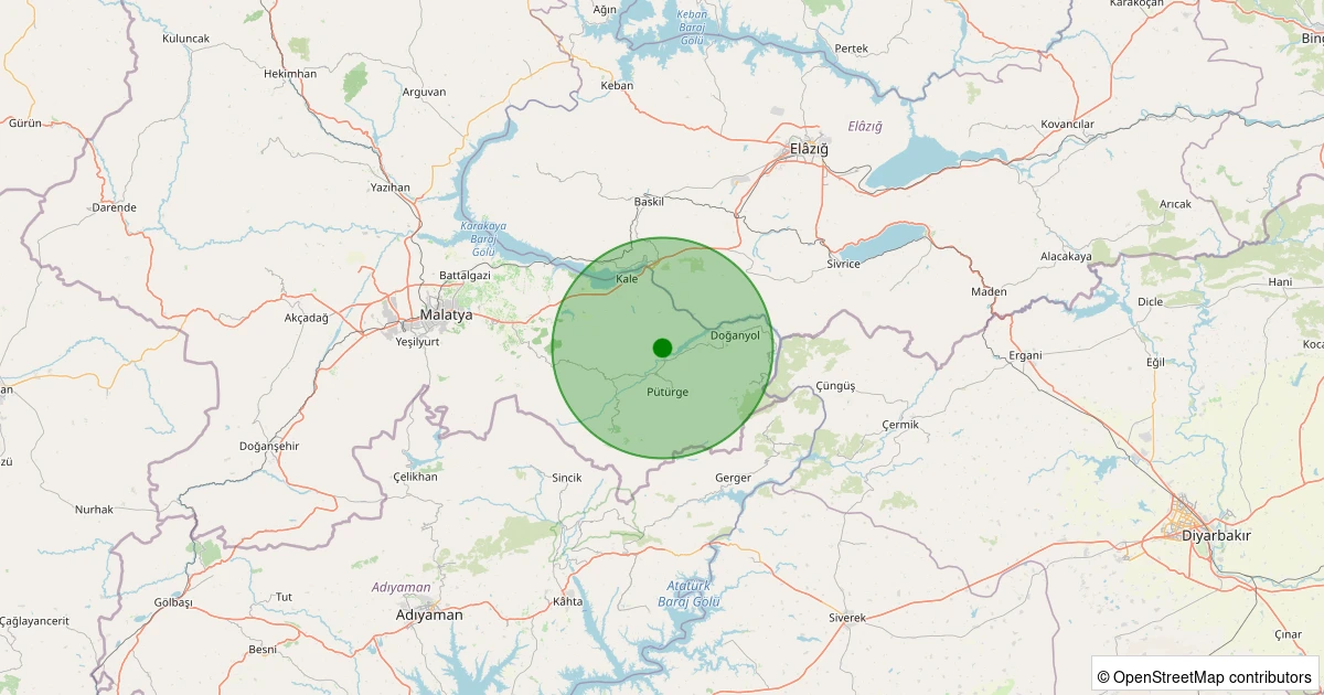 Son 7 gün içinde Pütürge - Bölükkaya Köyü noktasından 100 km yarıçap içerisinde meydana gelen diğer depremler: