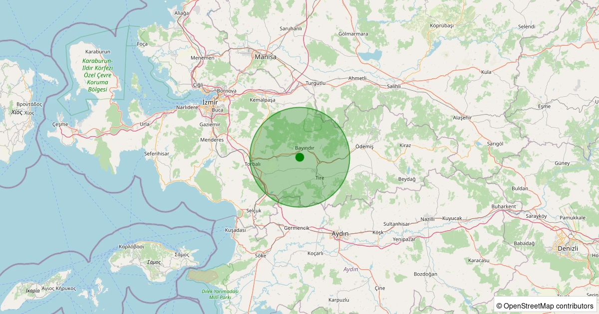 Son 7 gün içinde Bayındır - Karahallı noktasından 100 km yarıçap içerisinde meydana gelen diğer depremler: