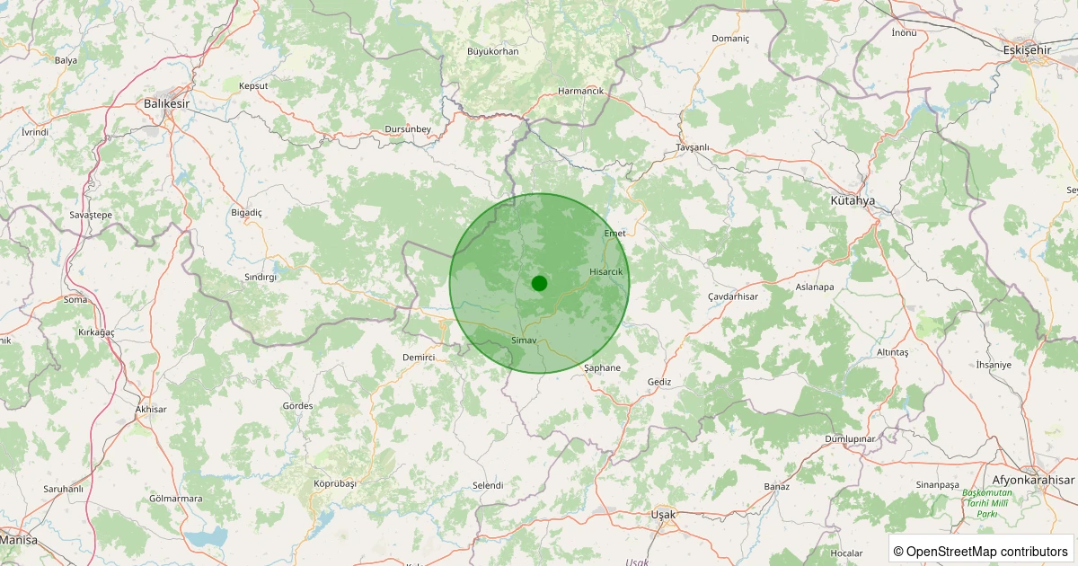 Son 7 gün içinde Simav - Yemişli Köyü noktasından 100 km yarıçap içerisinde meydana gelen diğer depremler: