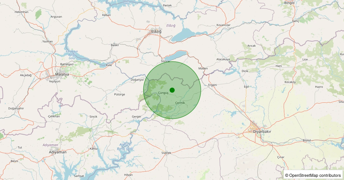 Son 7 gün içinde Çüngüş - Sağtepe Köyü noktasından 100 km yarıçap içerisinde meydana gelen diğer depremler: