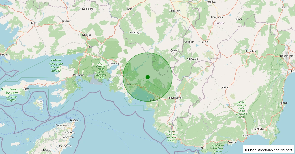 Son 7 gün içinde Dalaman - Çöğmen noktasından 100 km yarıçap içerisinde meydana gelen diğer depremler: