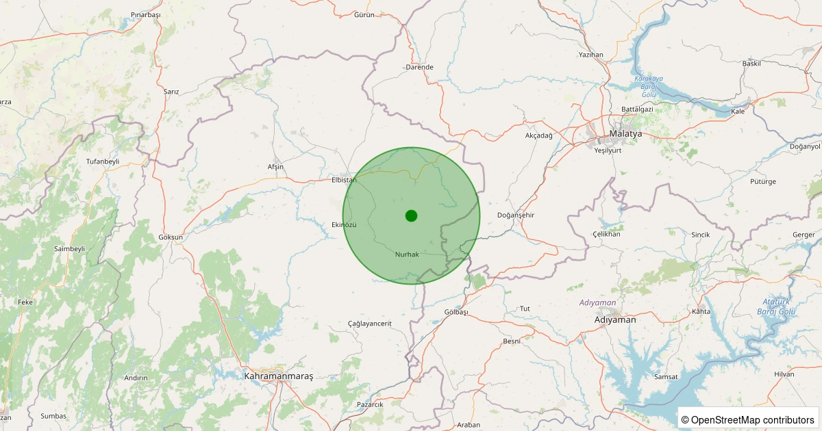 Son 7 gün içinde Elbistan - Bakış-Soğucak Köyü noktasından 100 km yarıçap içerisinde meydana gelen diğer depremler: