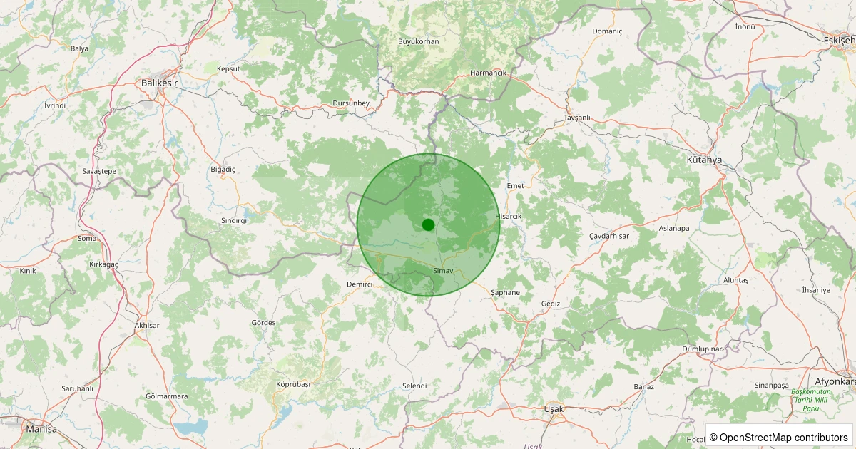 Son 7 gün içinde Simav - Koyunoba Köyü noktasından 100 km yarıçap içerisinde meydana gelen diğer depremler: