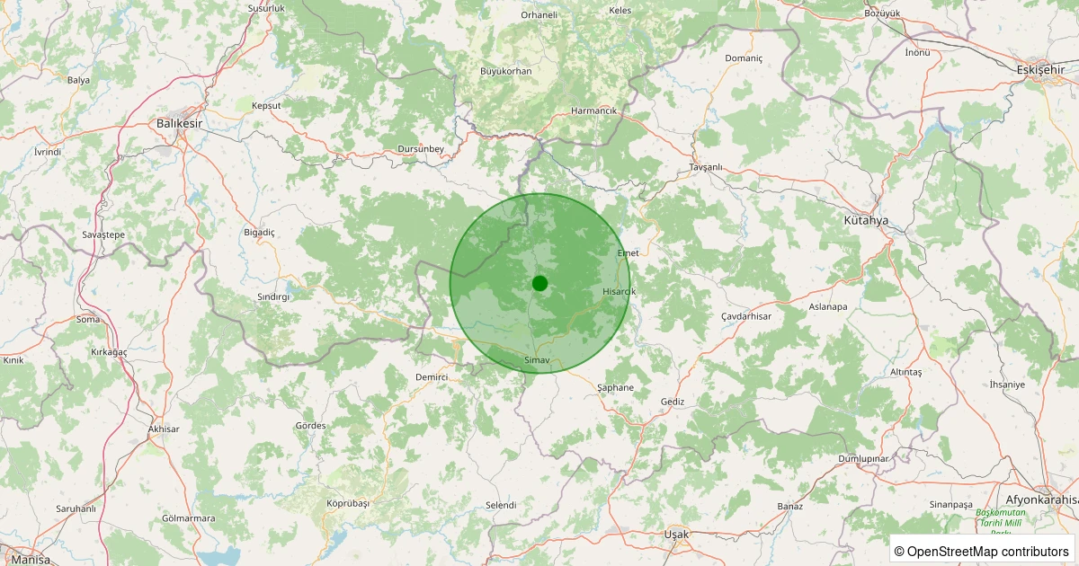 Kandilli üzerinden alınan ölçümlere göre Simav - Yeşildere Köyü bölgesinde 20.03.2026 08:37 tarihinde gündüz saatlerinde 1.2 büyüklüğünde bir deprem meydana geldi.