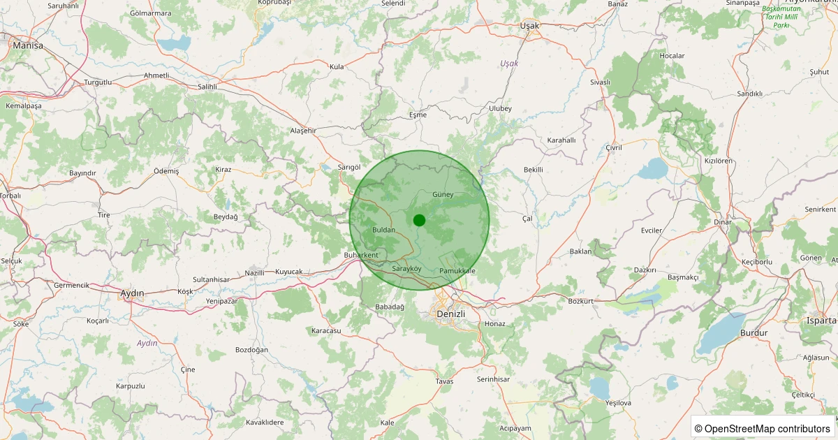 Son 7 gün içinde Buldan - Yenicekent noktasından 100 km yarıçap içerisinde meydana gelen diğer depremler: