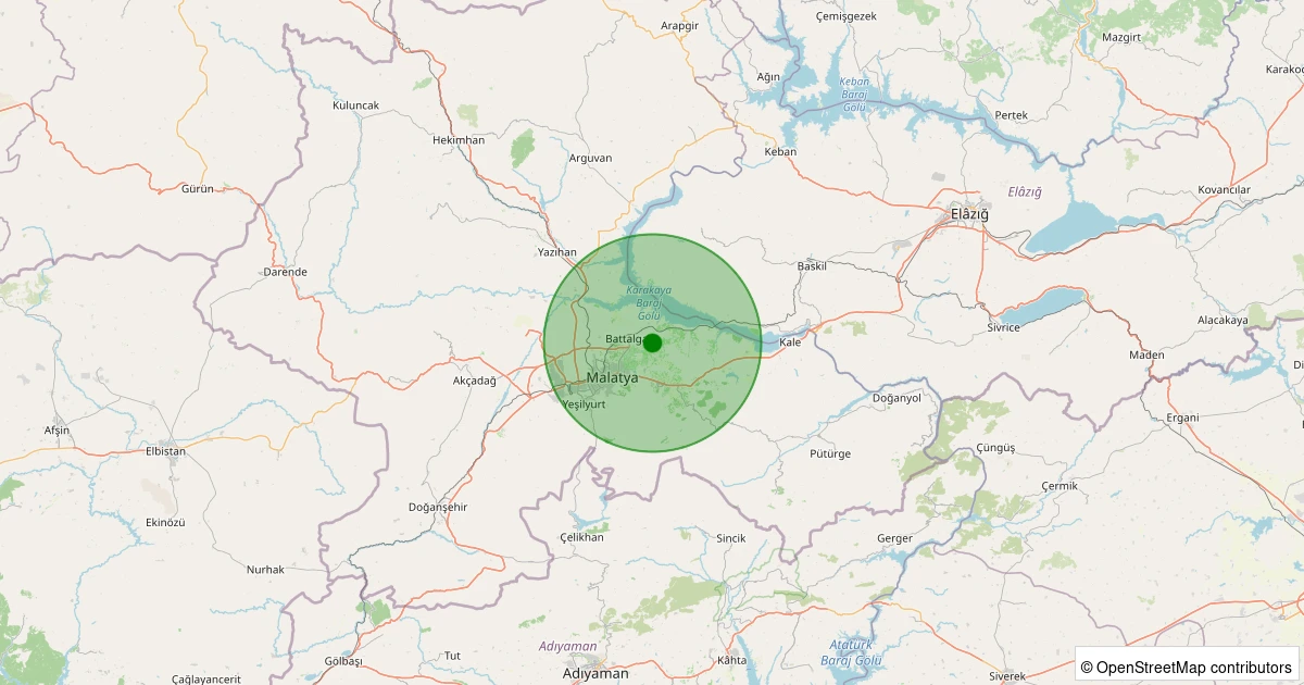 Son 7 gün içinde Battalgazi - Yarımcahan Köyü noktasından 100 km yarıçap içerisinde meydana gelen diğer depremler: