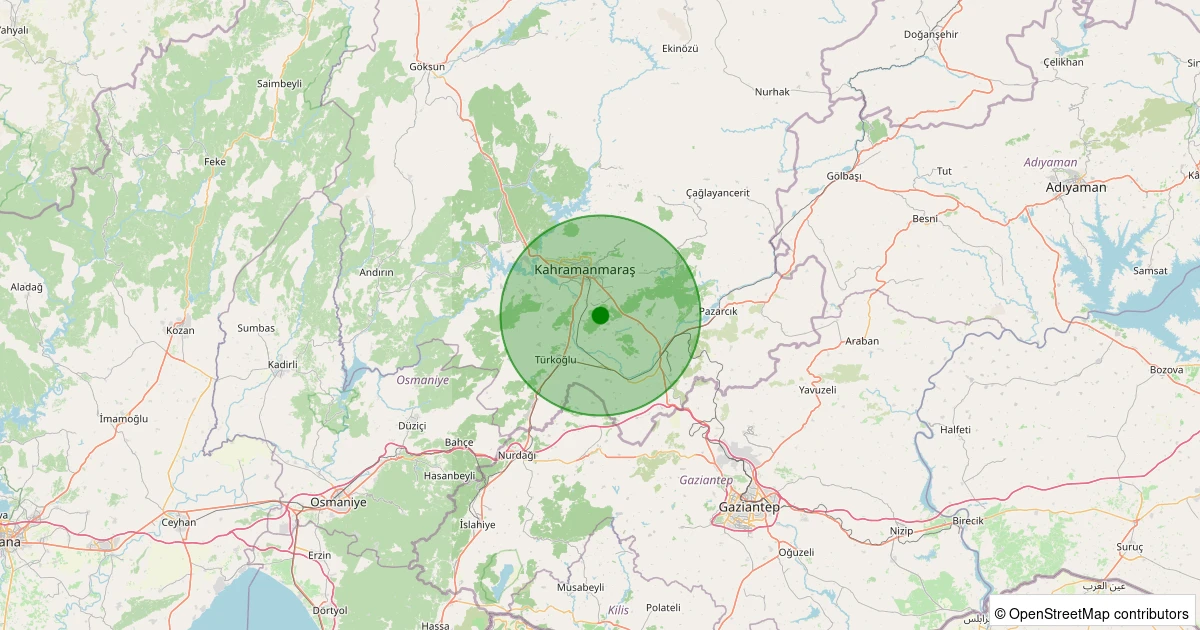 Son 7 gün içinde Dulkadiroğlu noktasından 100 km yarıçap içerisinde meydana gelen diğer depremler: