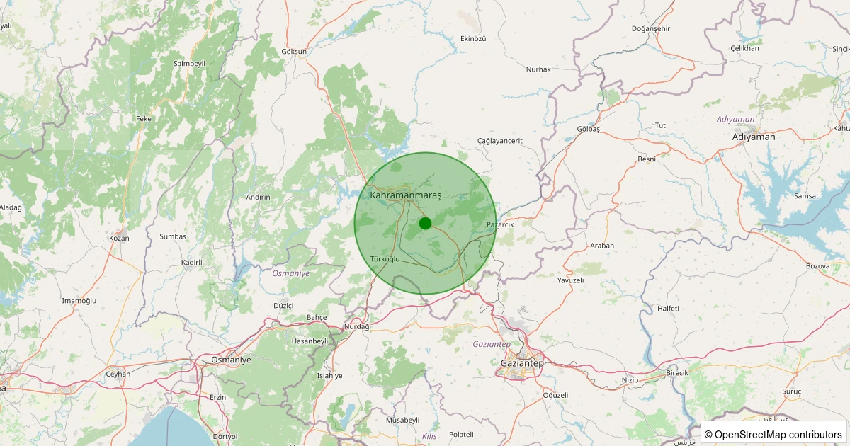 Son 7 gün içinde Dulkadiroğlu noktasından 100 km yarıçap içerisinde meydana gelen diğer depremler: