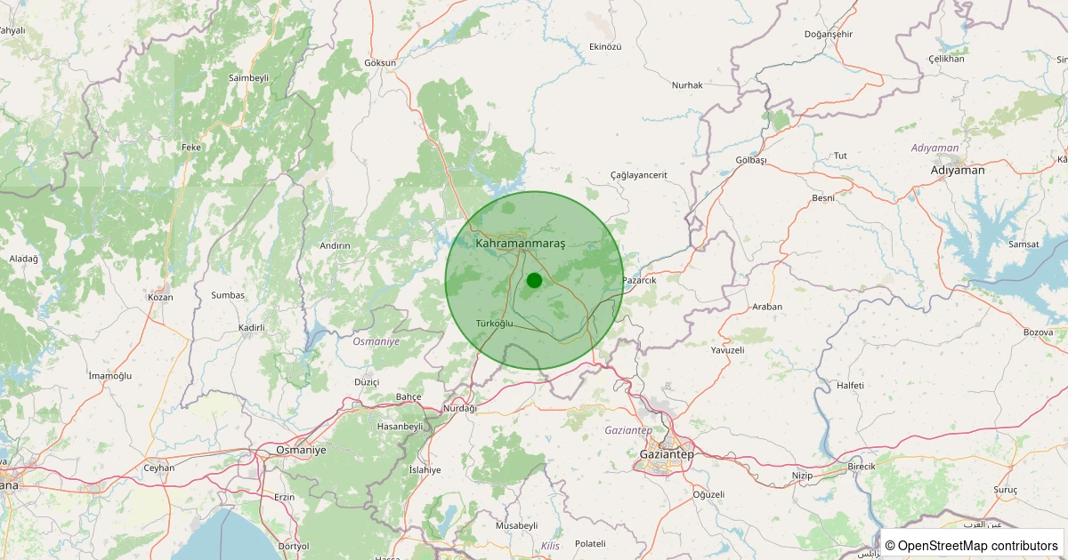 Son 7 gün içinde Dulkadiroğlu noktasından 100 km yarıçap içerisinde meydana gelen diğer depremler: