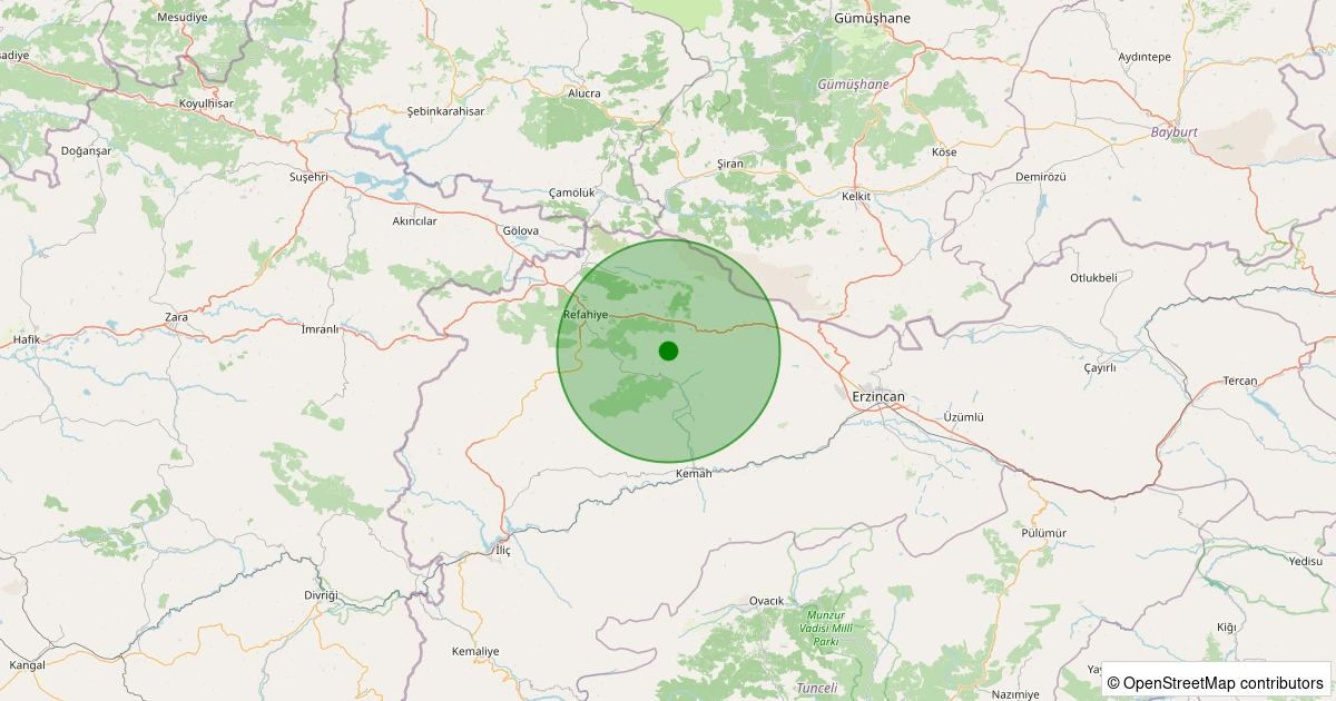 Son 7 gün içinde Refahiye - Laleli Köyü noktasından 100 km yarıçap içerisinde meydana gelen diğer depremler: