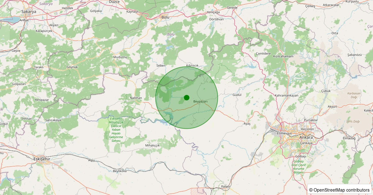 Son 7 gün içinde Beypazarı - Hırkatepe noktasından 100 km yarıçap içerisinde meydana gelen diğer depremler: