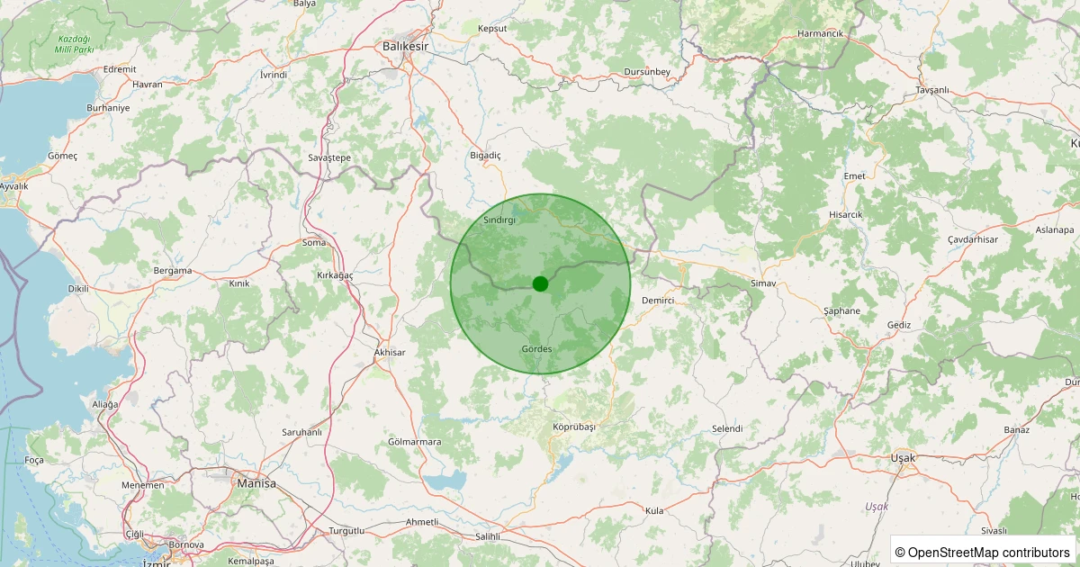 Son 7 gün içinde Sındırgı - Yüreğil/Merkez noktasından 100 km yarıçap içerisinde meydana gelen diğer depremler: