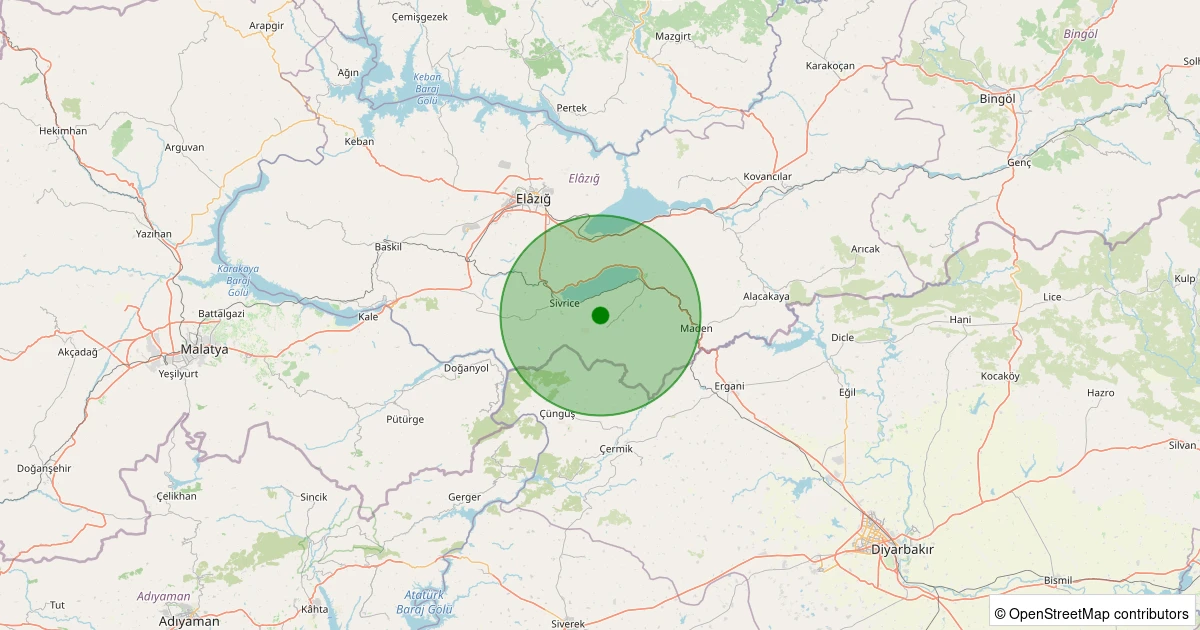 Son 7 gün içinde Sivrice - Akbuğday Köyü noktasından 100 km yarıçap içerisinde meydana gelen diğer depremler: