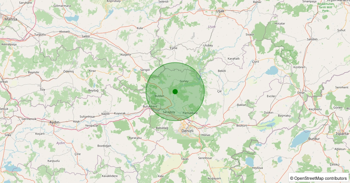 Son 7 gün içinde Buldan - Yenicekent noktasından 100 km yarıçap içerisinde meydana gelen diğer depremler:
