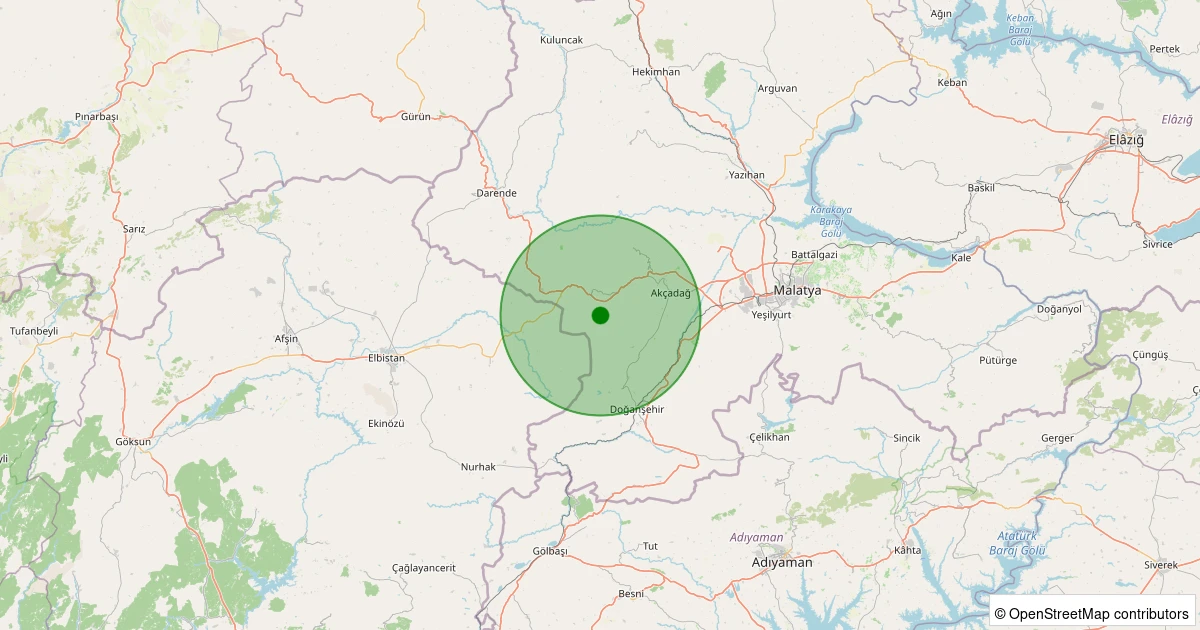 Son 7 gün içinde Akçadağ - Dutlu noktasından 100 km yarıçap içerisinde meydana gelen diğer depremler: