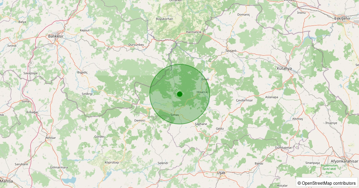Son 7 gün içinde Simav - Yemişli Köyü noktasından 100 km yarıçap içerisinde meydana gelen diğer depremler: