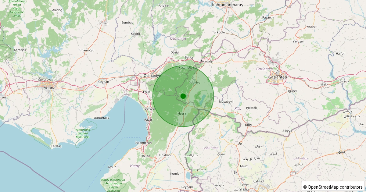 Son 7 gün içinde İslahiye - Kayabaşı noktasından 100 km yarıçap içerisinde meydana gelen diğer depremler: