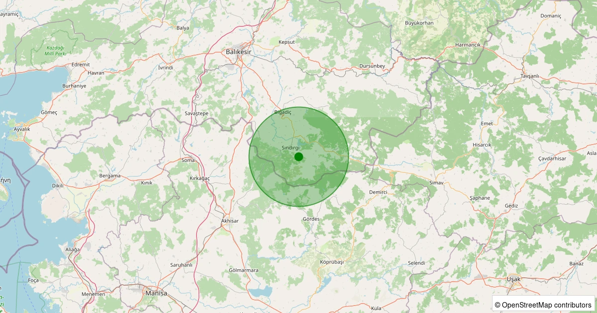 Son 7 gün içinde Sındırgı - Emendere noktasından 100 km yarıçap içerisinde meydana gelen diğer depremler: