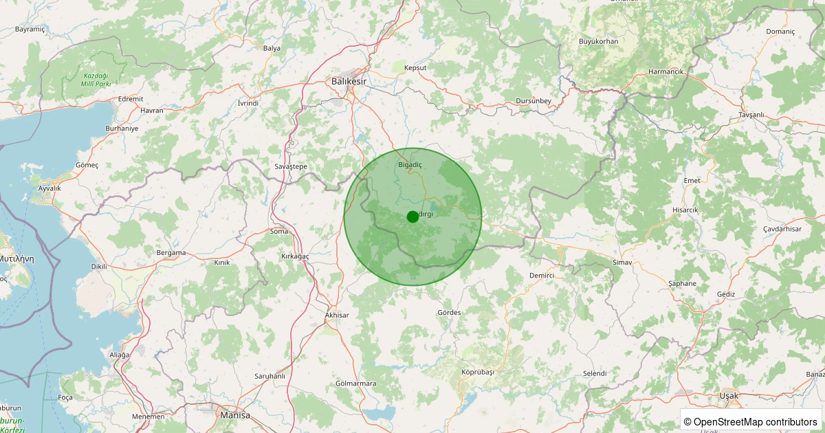 Son 7 gün içinde Sındırgı - Mandıra noktasından 100 km yarıçap içerisinde meydana gelen diğer depremler: