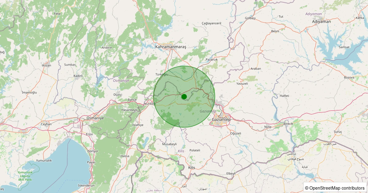 Son 7 gün içinde Pazarcık noktasından 100 km yarıçap içerisinde meydana gelen diğer depremler: