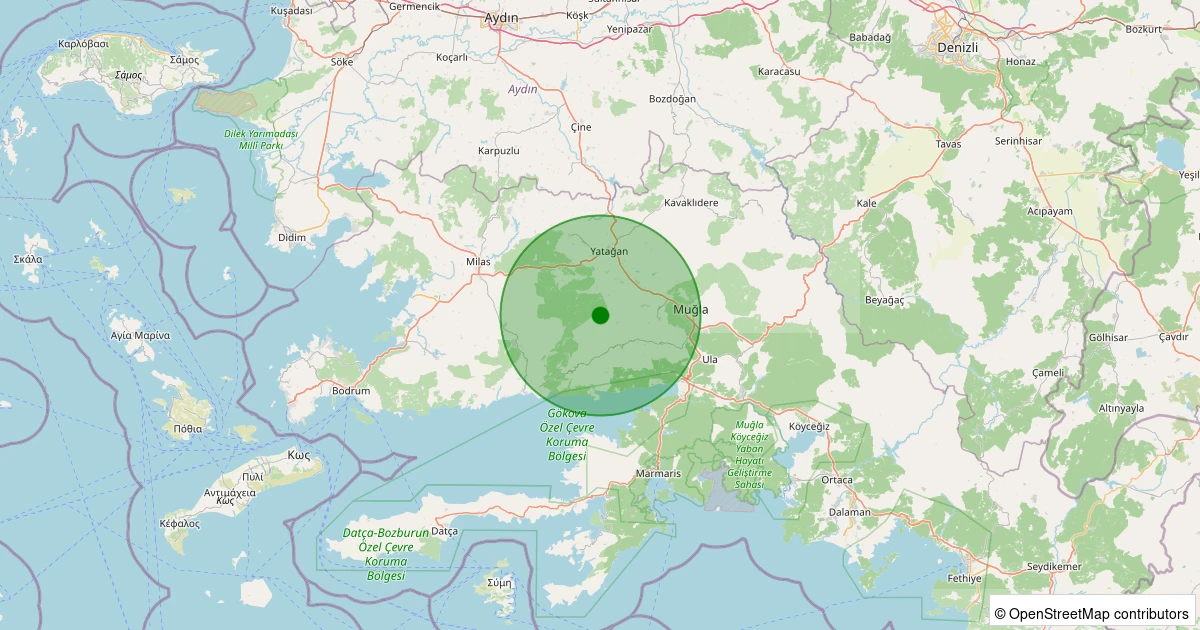 Son 7 gün içinde Yatağan - Çukuröz noktasından 100 km yarıçap içerisinde meydana gelen diğer depremler: