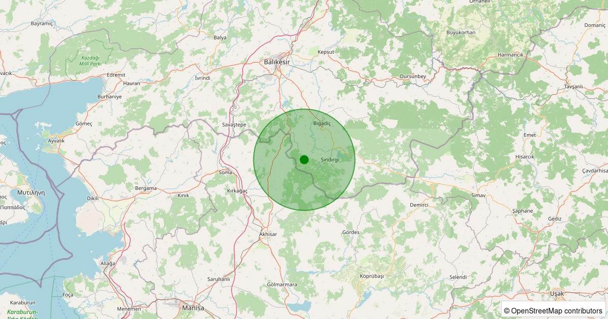 Son 7 gün içinde Sındırgı - Alakır noktasından 100 km yarıçap içerisinde meydana gelen diğer depremler: