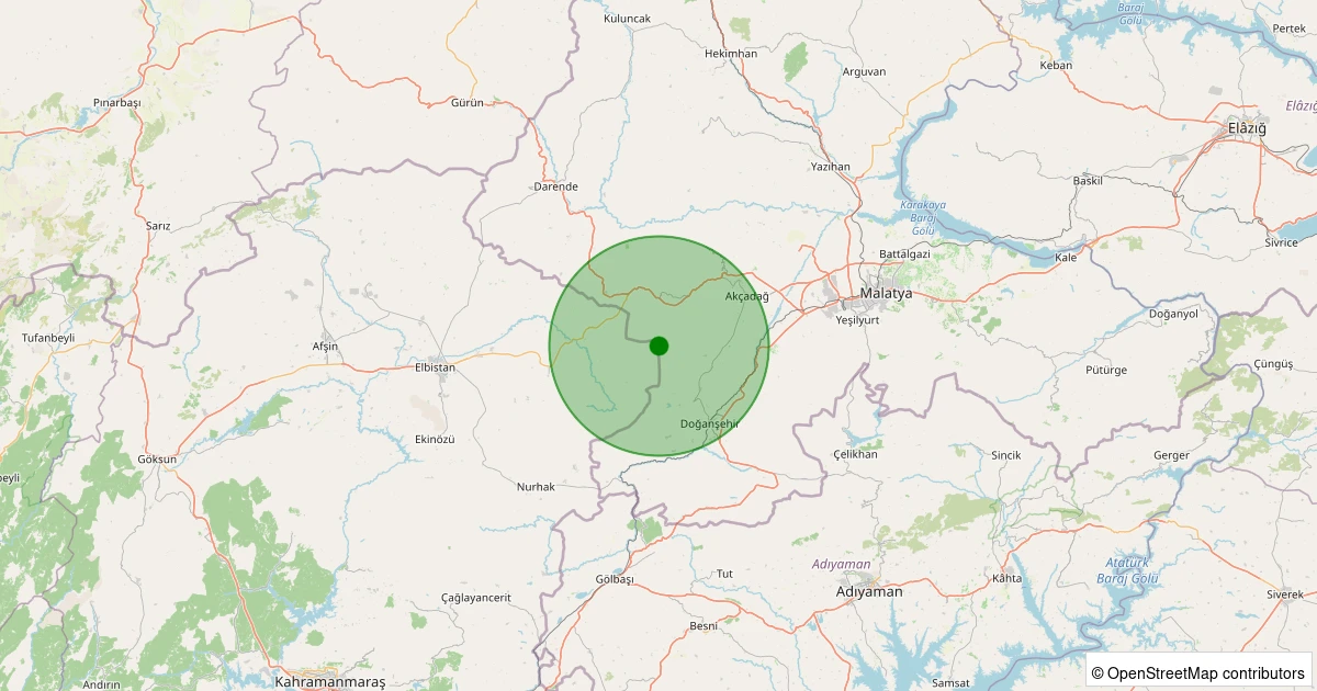 Son 7 gün içinde Akçadağ - Çevirme noktasından 100 km yarıçap içerisinde meydana gelen diğer depremler: